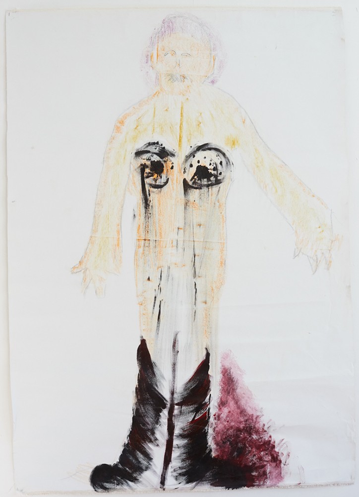 'This work invites you into my world to meet a series of its strange inhabitants clearly on the way to the same party…more or less human, each one in some way connected to the struggle to resist both an imposed single identity (‘disabled’) or the disorientating sense of fractured self her situation of 24/7 care engendered. The larger than life figures carry a power for anyone feeling reduced or ignored, they are a demand for attention denied.'